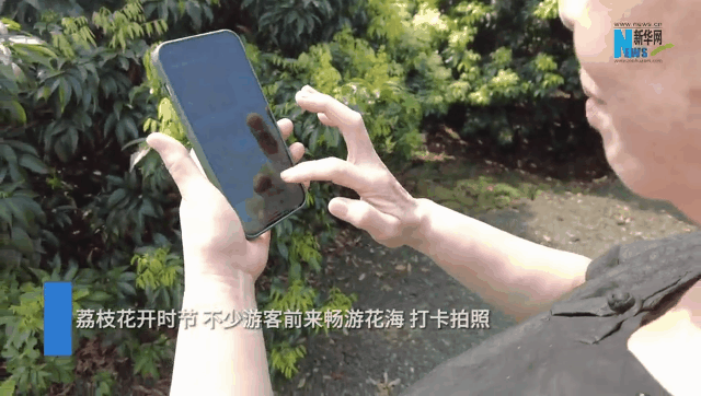 荔枝花开时节 不少游客前来畅游花海 打卡拍照