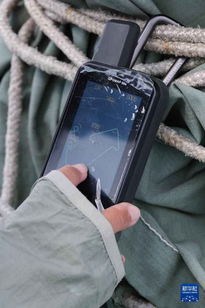 7月7日,在海南岛东部海域,考察团队成员在查看GPS位点信息。