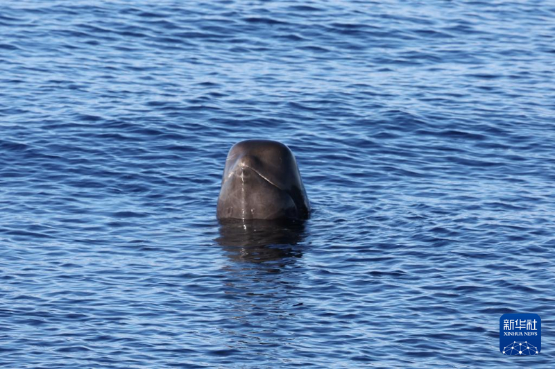 7月6日,在海南岛东部海域,一头短肢领航鲸在浮窥。