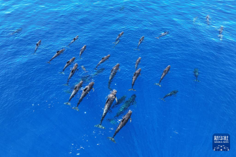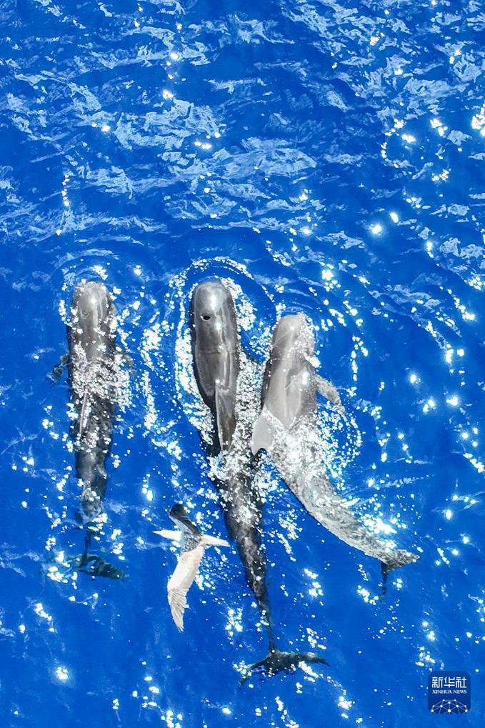 7月5日,一群短肢领航鲸在海南岛东部海域畅游(无人机照片)。