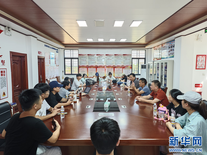 大学生志愿者团队与村干部及村民交流。新华网发