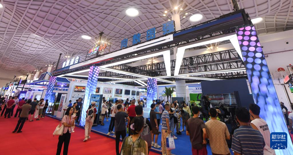 9月21日,观众在第十四届中国国际数字出版博览会上的海南展团展台参观。