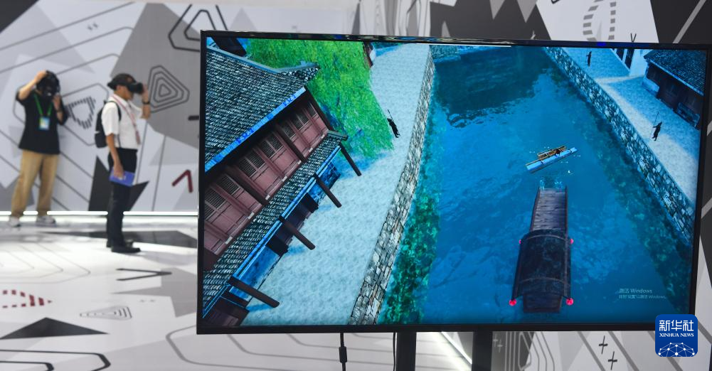 9月21日,观众在第十四届中国国际数字出版博览会上体验大运河VR沉浸式研学空间。