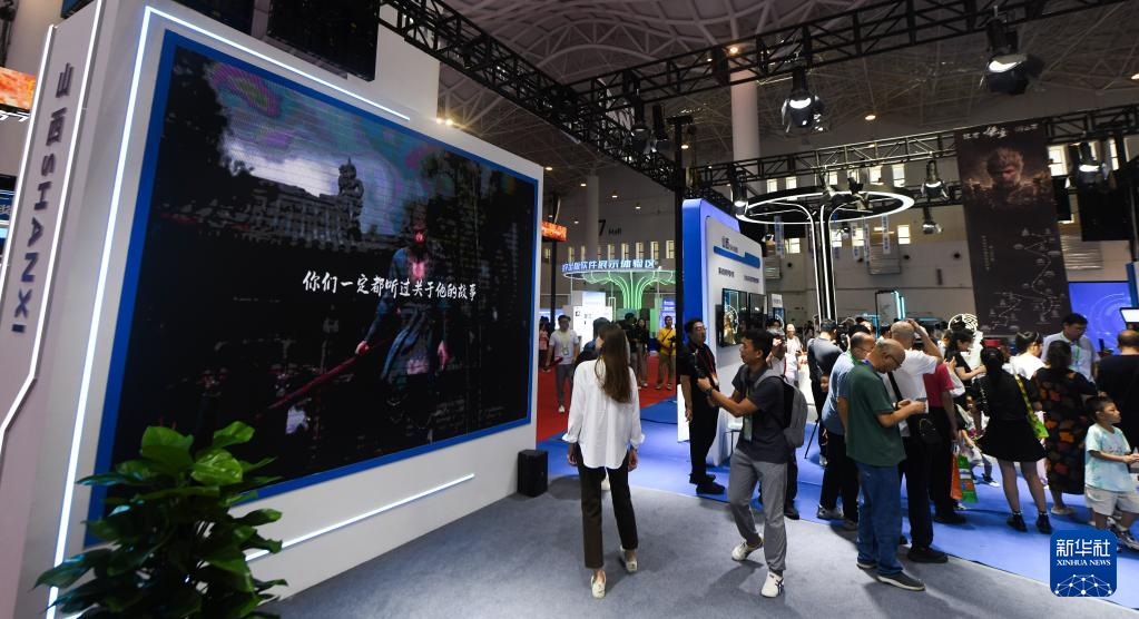 9月21日,观众在第十四届中国国际数字出版博览会上的山西展团展台参观。
