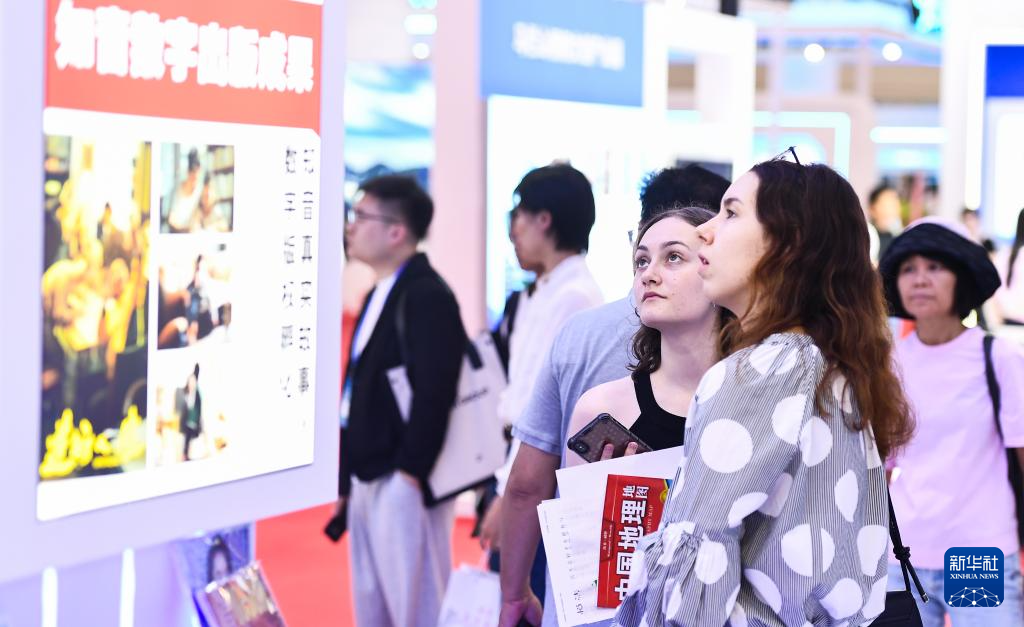 9月21日,观众在第十四届中国国际数字出版博览会上的中国国家版本馆展台参观。