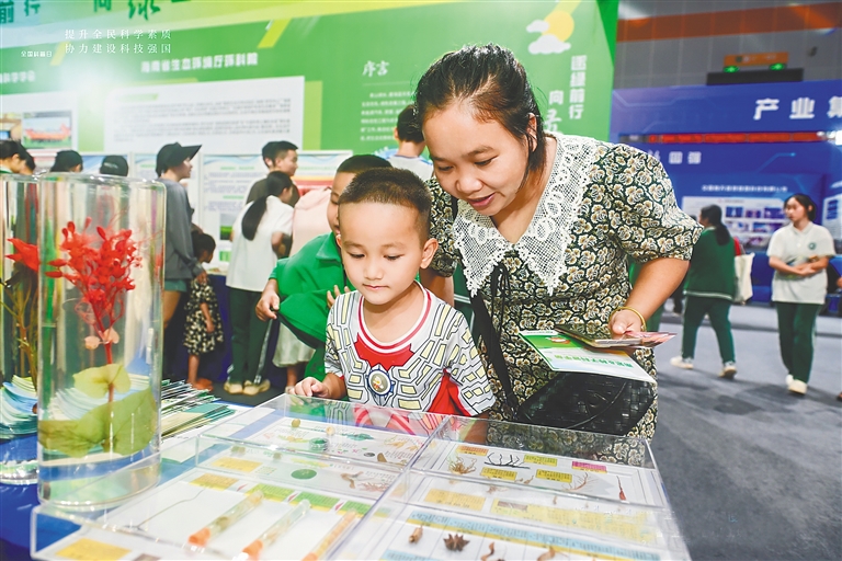 9月21日,2024年海南省“全国科普日”主场活动在儋州市体育馆举办,家长带着孩子参观标本。海南日报全媒体记者 邱江华 摄