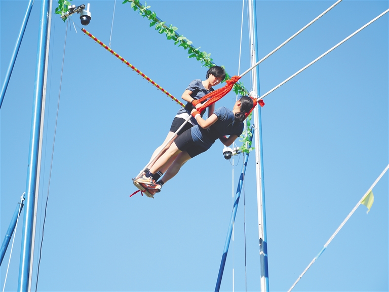 原题:第十二届全国少数民族传统体育运动会秋千测试赛今日在三亚举行