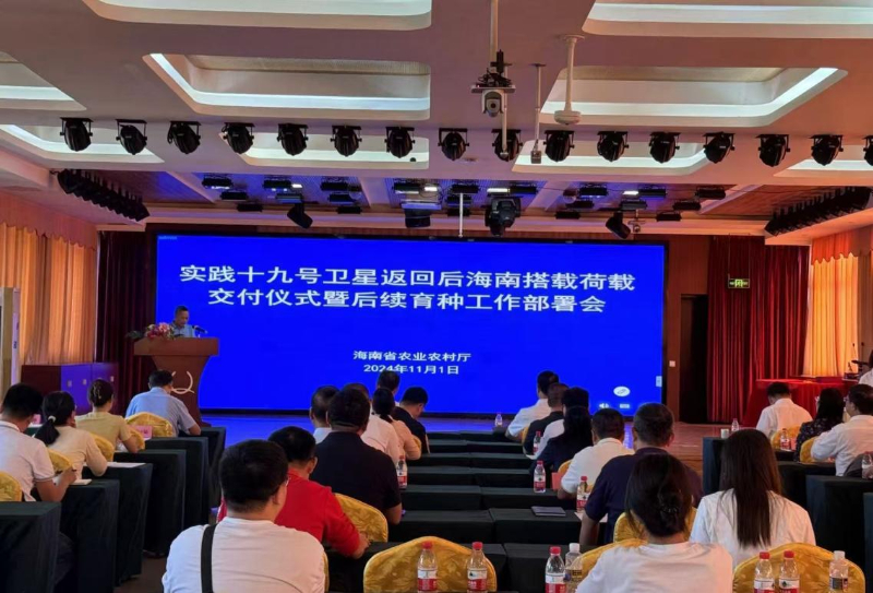 11月1日,由海南省农业农村厅牵头的“实践十九号卫星返回后海南搭载荷载交付仪式暨后续育种工作部署会”在海口成功举办。此次会议旨在对后续育种工作进行部署,并将航天种子交付于23 家航天育种单位代表。