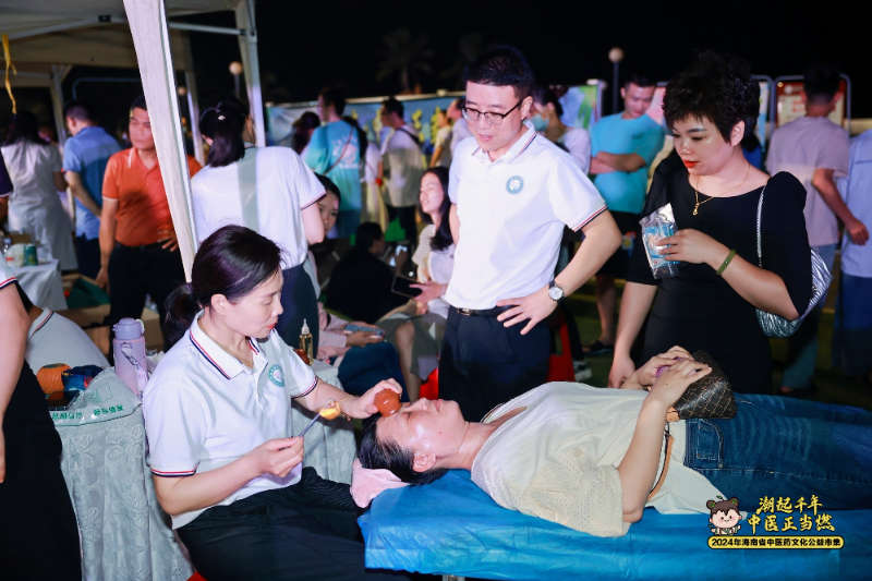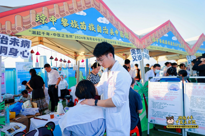 在中医院特色技术展示区,来自全省19家中医医院的医务人员现场展示了针灸、拔罐、推拿、刮痧等中医药适宜技术。藤灸、灯火灸、熏蒸、药罐等黎族医药特色疗法也一一亮相,让现场观众领略到了少数民族医药文化的独特魅力。