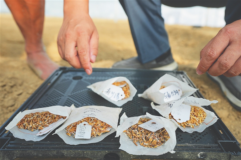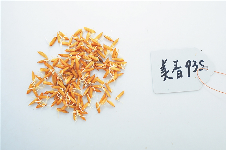 实验大棚内,工作人员打开放置种子的白色棉布袋,小心翼翼地将种子放置在温度、湿度稳定的环境中培育。