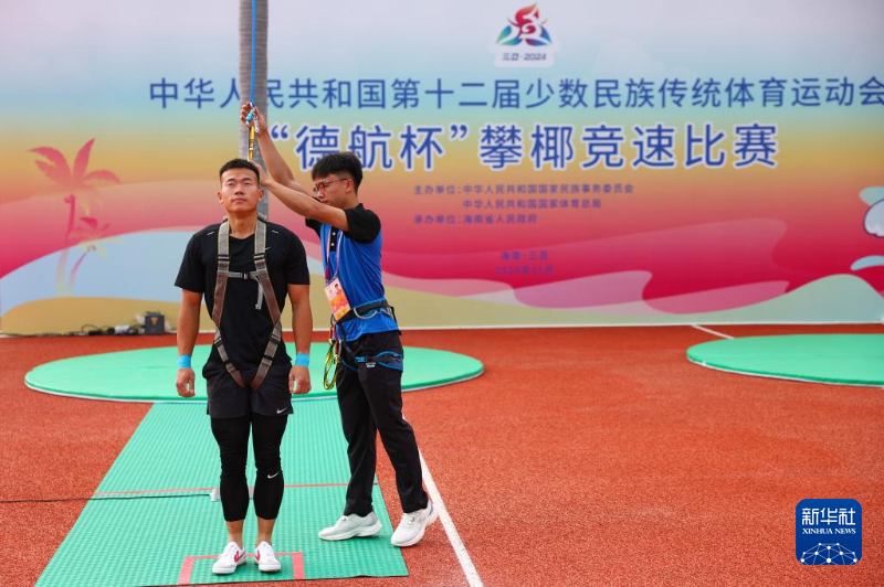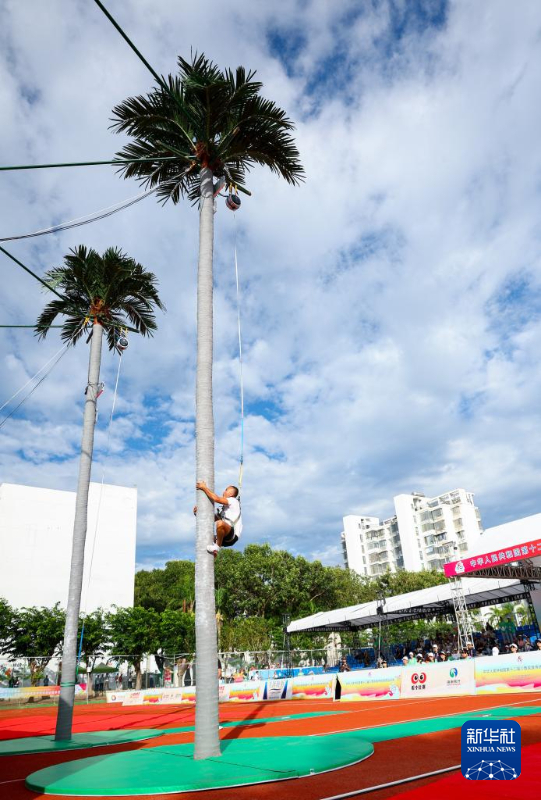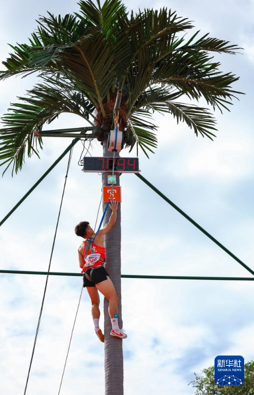 新华社三亚11月23日电(记者周慧敏、田光雨)你爬过树吗?你能想象爬树也能成为比赛项目吗?23日,作为第十二届全国少数民族传统体育运动会的新增竞赛项目,攀椰竞速比赛在三亚拉开帷幕,上演椰子树上的“速度与激情”。