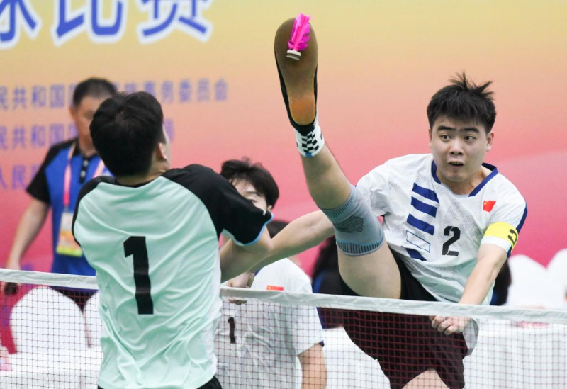 23日,第十二届全国少数民族传统体育运动会(以下简称“运动会”)毽球项目开赛。场地上,运动员们双腿如双臂般灵活,时而飞腿将毽球横扫过网,时而脚底板扣球绝杀,时而高抬腿一记倒钩让对手措手不及……