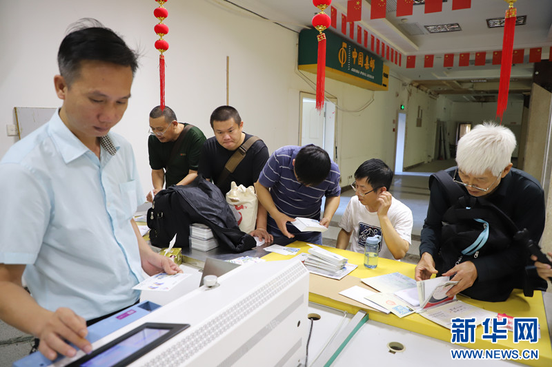 工作人员在为集邮爱好者提供过彩色邮资机戳服务(林志纬 摄)