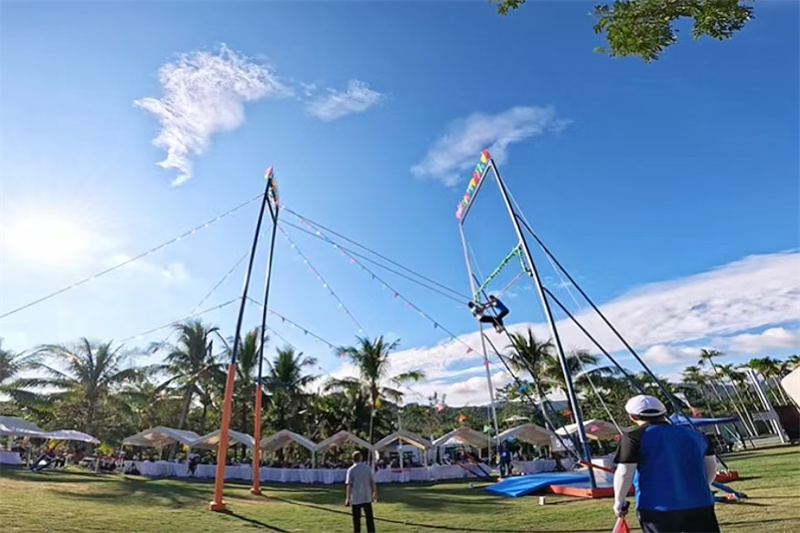 “叮铃!”一声清脆铃响后,三亚大茅远洋生态村的中心草坪上爆发出欢呼和掌声,12米高的秋千矗立在草坪之上,一场别开生面的秋千比赛正在此处举行。
