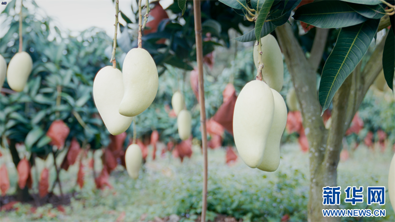 雷丰芒果技术人员对芒果种植户进行精准指导。新华网发(曾振刚 摄)
