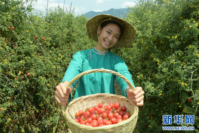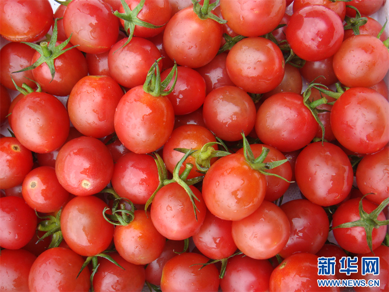 盛产于海南省陵水黎族自治县的圣女果晶莹剔透、宛如红宝石。新华网发