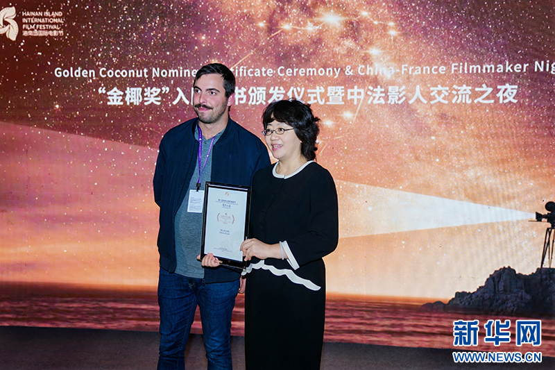 新华网三亚12月8日电(王雯君)12月7日晚,第六届海南岛国际电影节“金椰奖”入围证书颁发仪式暨中法影人交流之夜在三亚举行。当晚,入围影片的导演、演员等主创人员齐聚一堂,共同庆祝电影艺术的多样性和创作者们的卓越贡献。