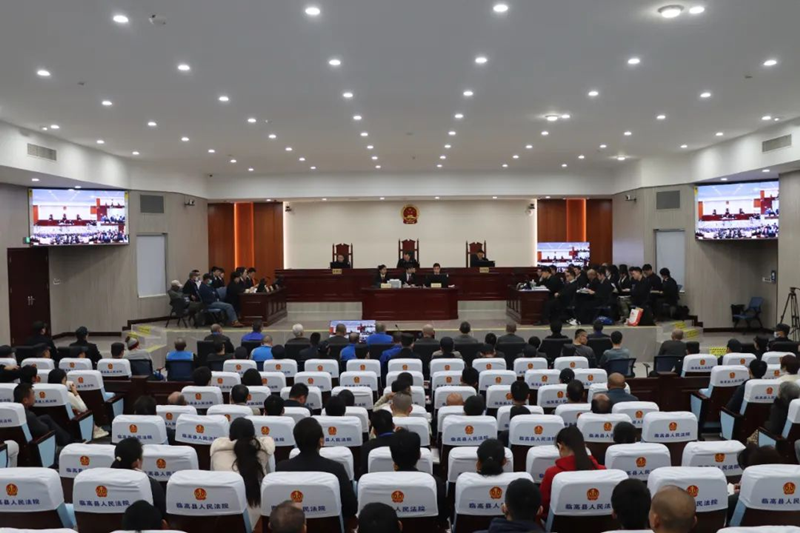 12月14日,海南省临高县人民法院公开开庭审理了被告人王某顺、王某等23人涉嫌聚众斗殴、敲诈勒索、强迫交易、盗窃罪的恶势力犯罪团伙案件。被告人家属及其他两委干部、公安干警共计150余人旁听了庭审。