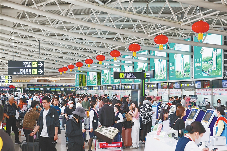 近日,三亚机场航站楼繁忙有序。海南机场集团供图