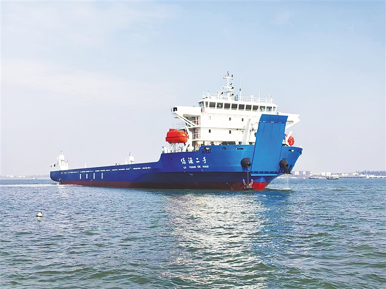 将于近日投入运营的琼州海峡最大新能源汽车运输专用船舶“绿源2号”。(海口海事局供图)