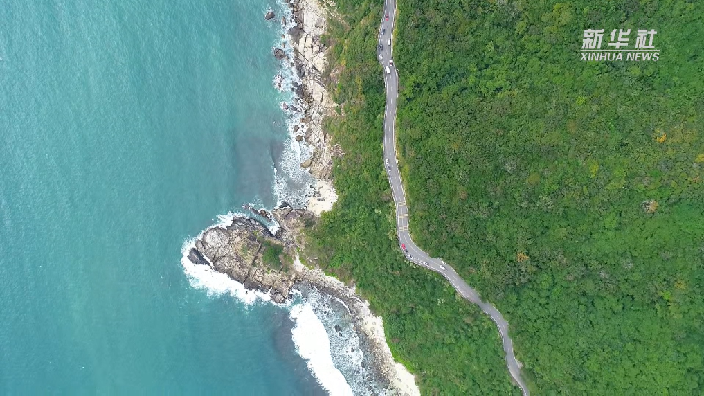 这条公路属于海南环岛旅游公路的一段,形似“卧龙”,一边是黑色的火山岩,一边是蔚蓝的大海。