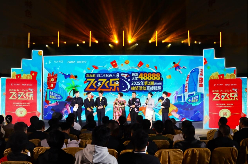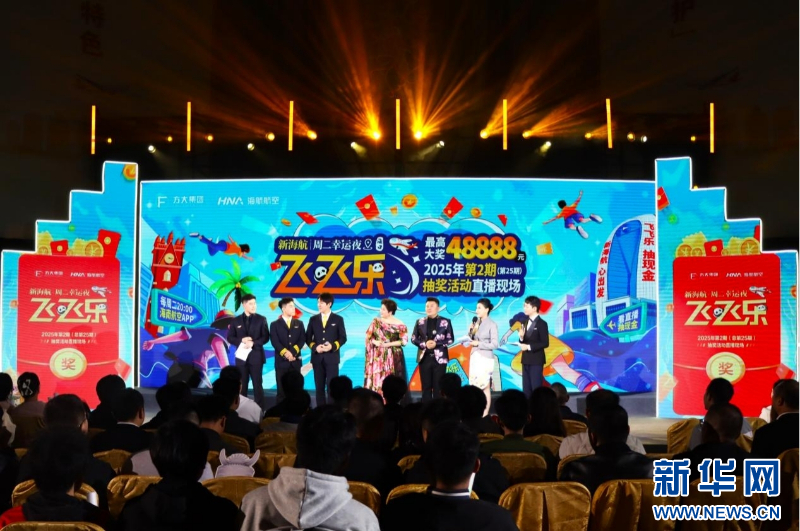 1月14日,2025年春运首日,新海航“飞飞乐”周二幸运夜现金抽奖活动在海口海航大厦举行,本期“飞飞乐”现金抽奖以“家乡美”为主题,通过家乡歌舞、家乡美食、家乡美景、家乡方言等地域特色节目和互动,全面呼应海航航空集团2025年春运“保畅通·护团圆”中心工作。