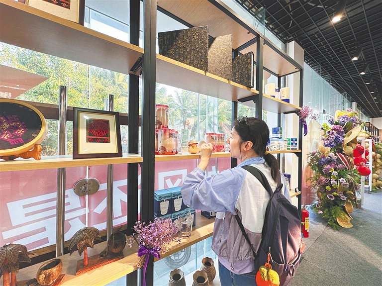 游客在“陵水好礼”文创店挑选心仪的商品。海南日报全媒体记者 王迎春 摄