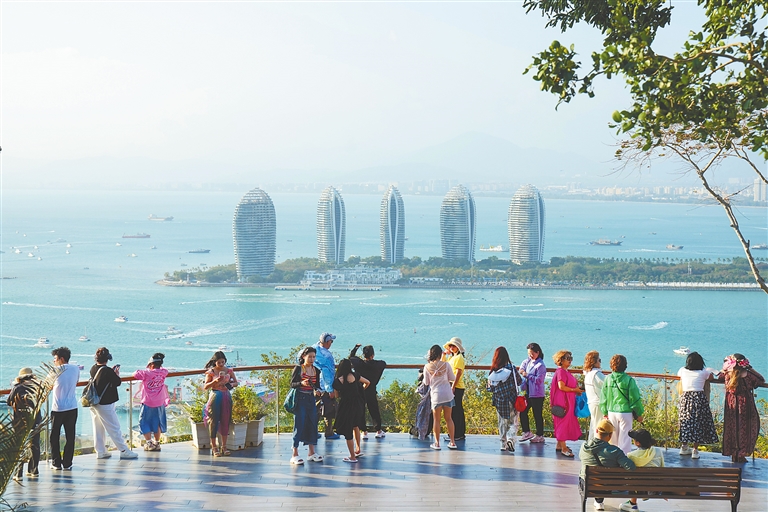2月20日下午,众多游客在三亚鹿回头风景区观赏三亚城市风光美景。海南日报全媒体记者 王程龙 摄