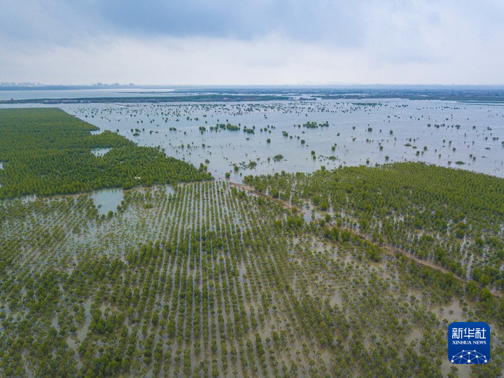 海南儋州一处修复后的湿地,大量人工栽种的红树林长势良好。新华社记者 蒲晓旭 摄