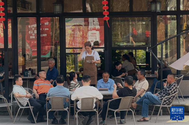 2025年3月5日,当地村民作为服务员在九所会客厅为顾客点单。新华社记者 陈子薇 摄