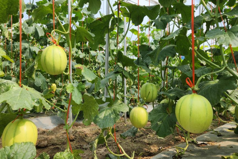 3月22日,三亚崖州国家现代农业(种业)产业园种植的新品种西甜瓜。新华社记者 郭良川 摄