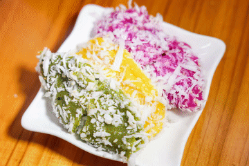 用高粱、糯米和椰丝制作而成,色彩丰富多样,是琼海的传统小吃。