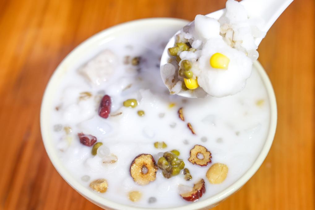 通常由绿豆、红豆、薏米、西米等多种食材组成,再加入椰子水或椰奶调和,不断出现创新的口味和食材。边饮边嚼,口感丰富。
