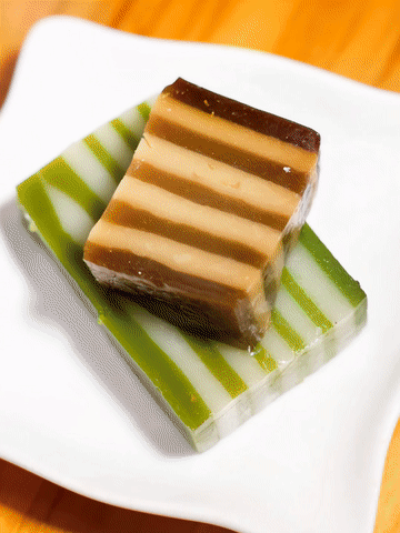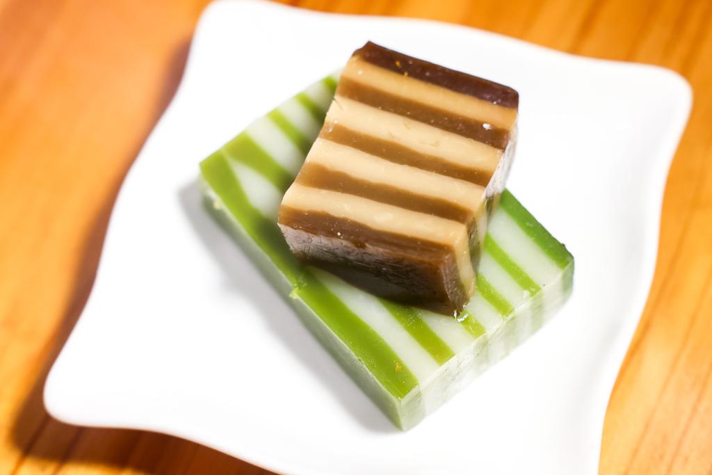 千层糕因其层层分明的外观而得名,口感软糯香甜,椰香与斑斓的清香相互交融。