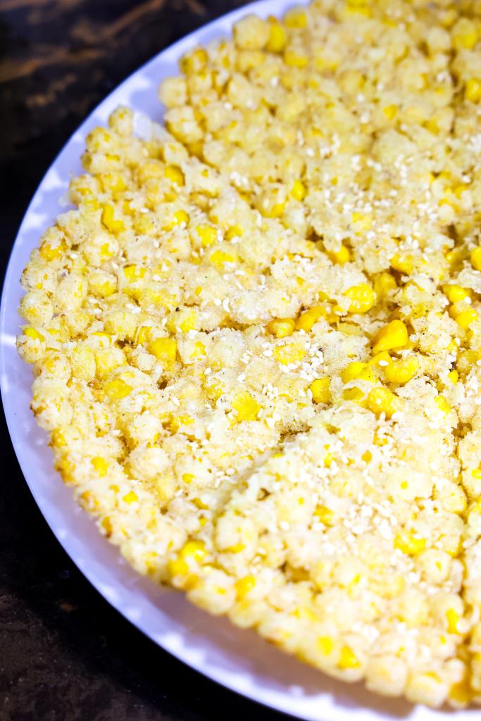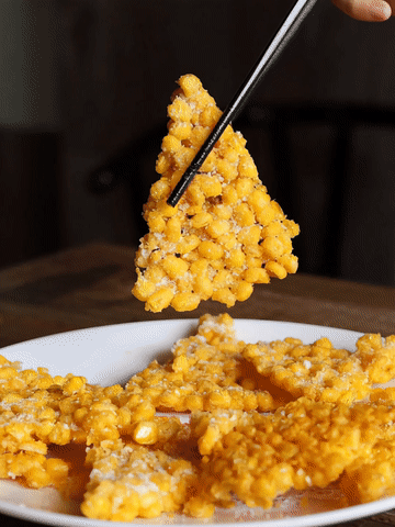 玉米烙是将新鲜玉米粒加工后油炸而成的小吃,外表金黄松脆,内里玉米粒甜嫩多汁。