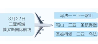 3月22日05:32,随着一架搭载着295名旅客的俄罗斯航空客机平稳降落在三亚凤凰国际机场,标志着三亚机场正式开启俄罗斯乌法、喀山、圣彼得堡三大航点的通航进程,新增“乌法—三亚—喀山”“喀山—三亚—圣彼得堡”及“圣彼得堡—三亚—乌法”3条航线。