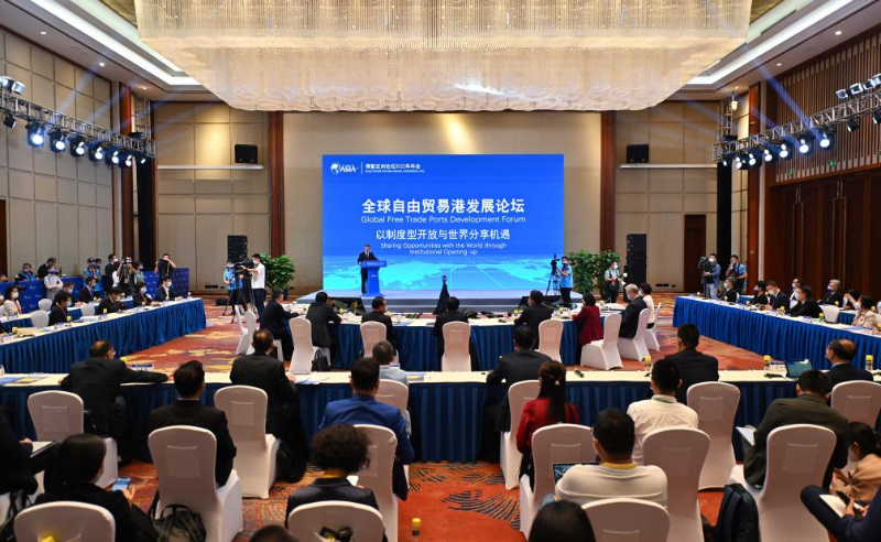 2022年4月21日,博鳌亚洲论坛2022年年会举行“全球自由贸易港发展论坛”。与会嘉宾就如何提升自由区(港)的国际竞争力等话题展开交流。新华社记者 郭程 摄