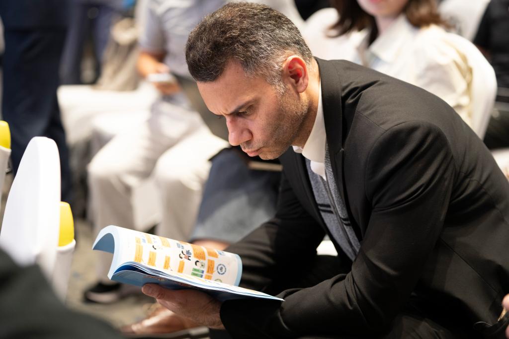 3月25日,外国参会嘉宾在阅览漫画册。新华社发