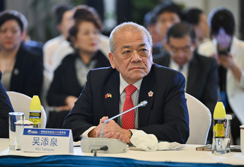 亿利达控股集团执行主席、马来西亚中华大会堂总会(华总)总会长吴添泉在博鳌亚洲论坛2025年年会期间参加华商领袖与华人智库圆桌会议。新华社记者 郭程 摄