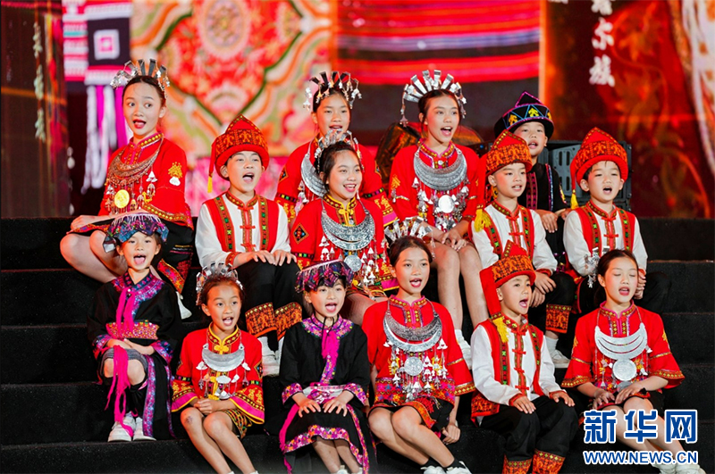 3月31日晚20时,2025年海南黎族苗族传统节日“三月三”主会场开幕仪式暨民族大联欢活动在五指山市三月三广场盛大举行。图为开幕仪式上五指山黎苗童声合唱团的孩子们在演唱歌曲。新华网发
