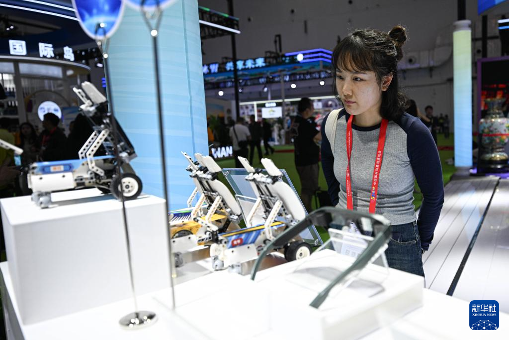 4月13日,一名参观者在第五届消博会北京展区参观。新华社记者 蒲晓旭 摄