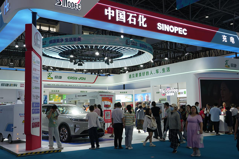 答:本届消博会,中石化以“能源至净、生活至美”为主题,围绕“油气氢电服”综合能源服务商转型成果,打造科技感与人文关怀并重的展区。展区分为“综合能源技术”与“易捷服务家生活”两大板块,通过AI数字员工、智能加油机器人、移动储充机器人等创新应用,以及易捷精选商品展区,全面展现中石化在清洁能源研发、智慧服务场景和品质生活生态的实践路径。