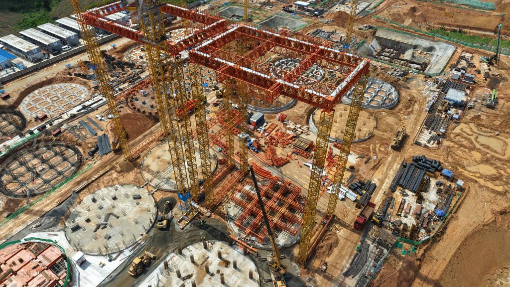 4月30日,“筒仓机”在海南琼中拼装完成。(中建三局供图)