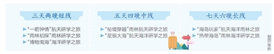 “我们经过企业推送、市场检验、专家研判等流程,针对亲子家庭、青春学子、中小学毕业生以及时尚青年等不同客群,定制了这次的7条旅游线路。”省旅游与文化广电体育厅相关负责人表示,未来,海南还将积极推动研学旅游与免税购物、康养度假、赛事会展等多个领域的深度融合,让海南研学旅游从暑期经济转型到四季研学,为全球青少年提供更多元化的研学体验。