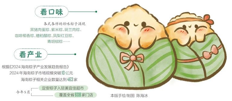 虽然万“粽”风情,争奇斗艳,但传统肉蛋粽的主流地位仍不可替代。定安县粽子协会会长王沸健告诉记者,定安黑猪肉粽近年来销量连年增长,深受消费者的喜爱和认可。为进一步方便消费者选购,今年5月,定安粽子正式入驻美宜佳超市,覆盖全省608家门店。