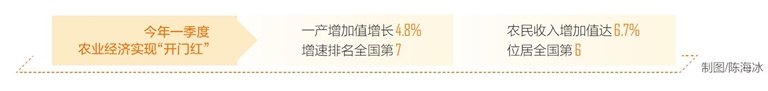海南日报全媒体记者从5月23日召开的全省农业重点工作部署推进会上获悉,今年一季度,我省积极抓好农业生产,农业经济呈现回升向好态势,一产增加值增长4.8%,增速排名全国第7;农民收入增加值达6.7%,位居全国第6,保持了快于全国、快于城镇的好势头,农业经济实现“开门红”,不少亮点工作可圈可点。