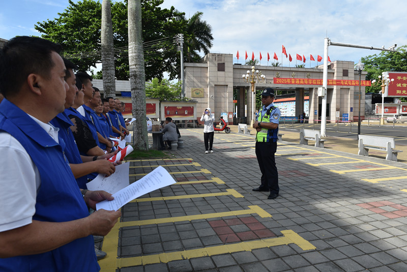 6月5日,在海南省屯昌县屯昌中学门口,31名“小屯妹・大昌叔”爱心送考车司机参与由交警部门组织的送考专项培训,他们将参与高考期间的送考任务,为考生保驾护航。