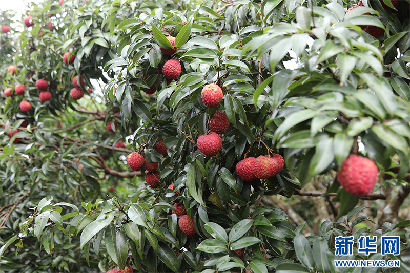 工作人员为采风团成员介绍当地荔枝产业的发展情况。新华网发