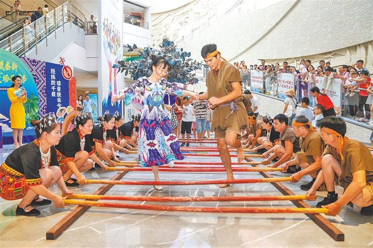 7月12日,黎族打柴舞在海南省非物质文化遗产展示中心上演。本组图片均由海南日报全媒体记者 李天平 摄