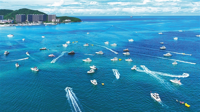 近日,夏日的三亚湾,游艇穿梭,驰骋海面。海南日报全媒体记者 王程龙 摄